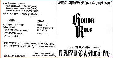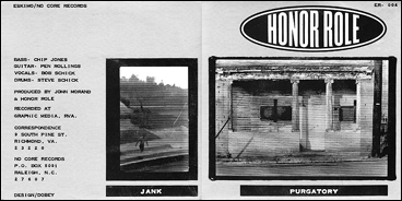HONOR ROLE "Hard Times, Richmond, VA, unknown date 1984" [may be May 3rd, according to flyer]